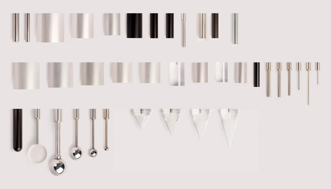 Standard cylinder, cone, needle, ball and hemispherical probes are available in delrin, stainless steel or aluminium but bespoke probes in other materials and dimensions can be designed and made to order.
